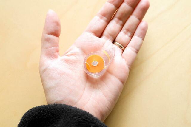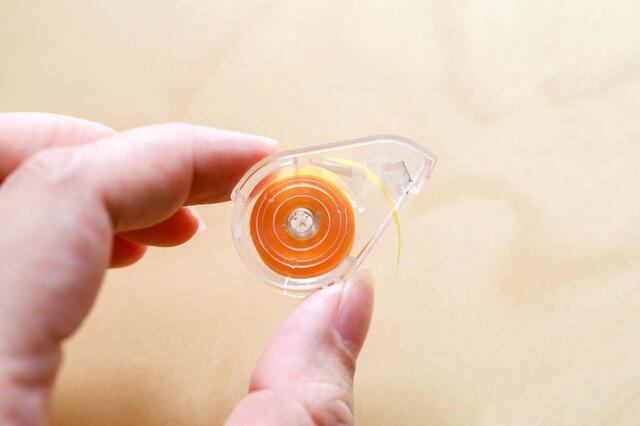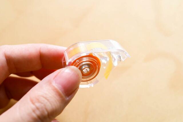 透明なケースにフィルムテープが入っており、見た目は小さな修正テープのような感じ。