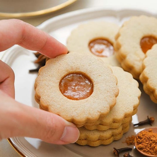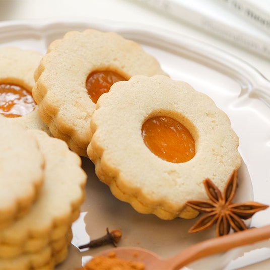 バター香る軽やかなサブレと、甘酸っぱい杏の絶妙なバランス。シナモンやカルダモンが鼻に抜ける静かな余韻を楽しむ、大人のためのサブレサンド。