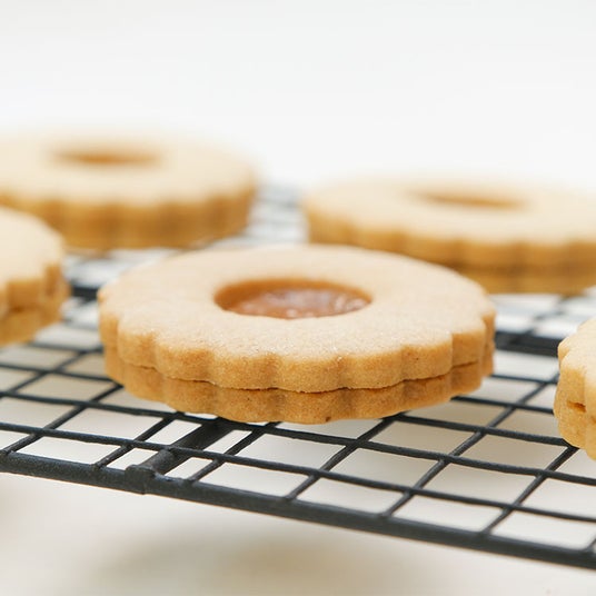 本製品は、アーモンドを混ぜ込んだ軽やかなサブレで、甘酸っぱいアプリコットジャムをやさしくサンドした、香り高い焼き菓子です。