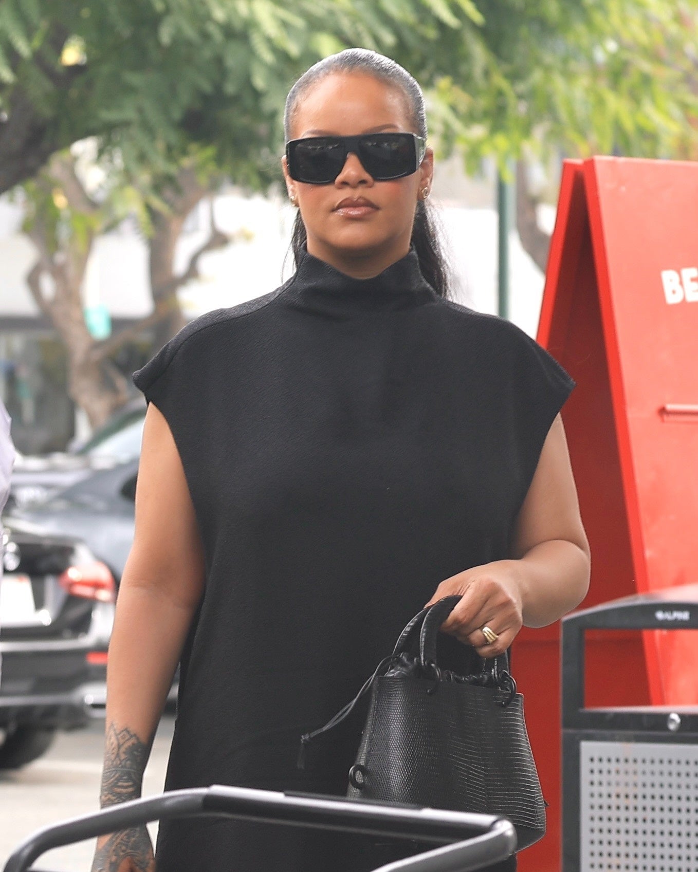 リアーナは、ディオールとマグダレン・オドゥンドのコラボレーションによるブラックの「レディ ディオール」バッグを手にしていました。