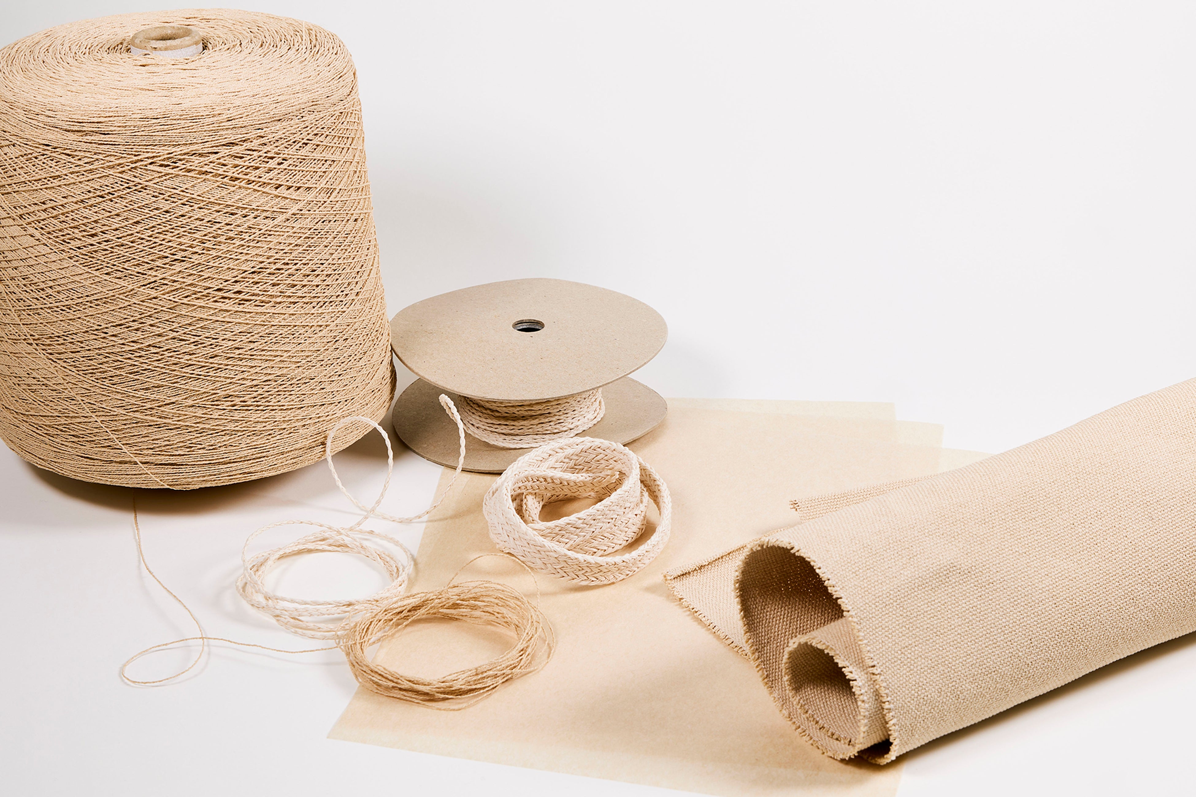 株式会社竹尾(本社:東京都千代田区、代表取締役社長 平戸順一)は、コーヒーフィルターの打ち抜き端材から開発されたリサイクル素材「Cafetex(カフェテックス)」の取り扱いを開始いたしました。この端材を再生パルプ化して薄葉紙を作り、さらにマイクロスリット加工、撚糸加工を施すことで紙糸としても活用できる新しい素材です。紙糸は染色や他の繊維との複合加工にも対応可能で、アパレルや産業資材、インテリアなど、幅広い分野での利用が期待されています。