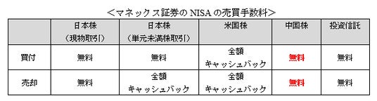 マネックス証券のNISAでは、取り扱う全ての商品の売買手数料が無料です。
