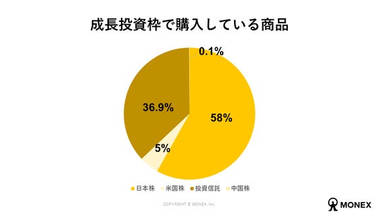 成長投資枠での購入商品は購入金額ベースで58%が日本株となりました。日経平均株価が上昇し、日本株の相場が活況だったことも手伝って、日本株のNISA口座での買付が好調だったことがうかがえます。市場が長期的に成長していて成長投資枠でないと購入できない米国株への投資も積極的に促していきたいと考えています。