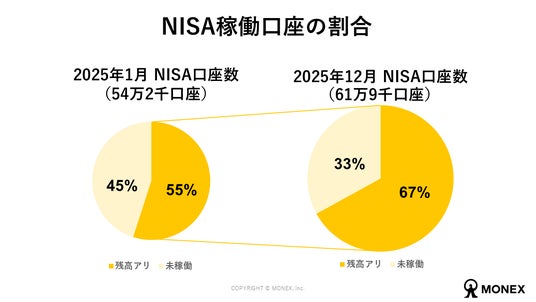 ・NISAの稼働口座は2025年1月の段階では55%だが、12月には67%。(1-1)