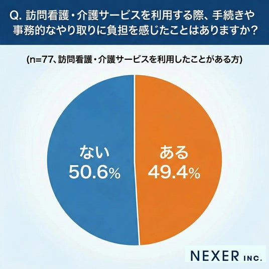 しかし、実際に訪問看護・介護サービスを利用した方の約半数が手続きや事務的なやり取りに負担を感じており、書類の多さや専門用語への戸惑いといった意見が寄せられています。