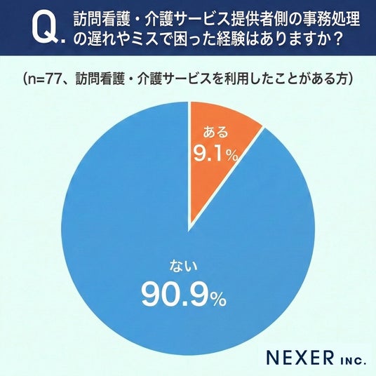 最後に、同じく訪問看護・介護サービスを利用したことがある方に、提供者側の事務処理の遅れやミスで困った経験があるかを聞いてみました。