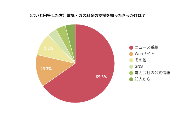 - 電気・ガス支援を把握した情報源は「ニュース番組」が65.3%で最多