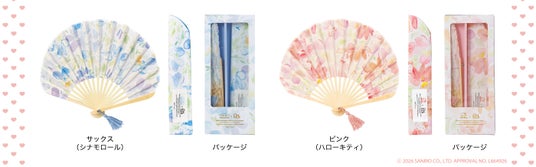 柔らかな水彩タッチで描かれた花柄に、サンリオキャラクターズが上品に溶け込んだ扇子。大人の女性も日常使いしやすい、華やかながらも繊細なデザインに仕上げました。収納袋付きで持ち運びにも最適!扇子とお揃いの柄が可愛いギフトボックスは今回のコラボレーションのための特別仕様で、贈り物にもぴったりです。