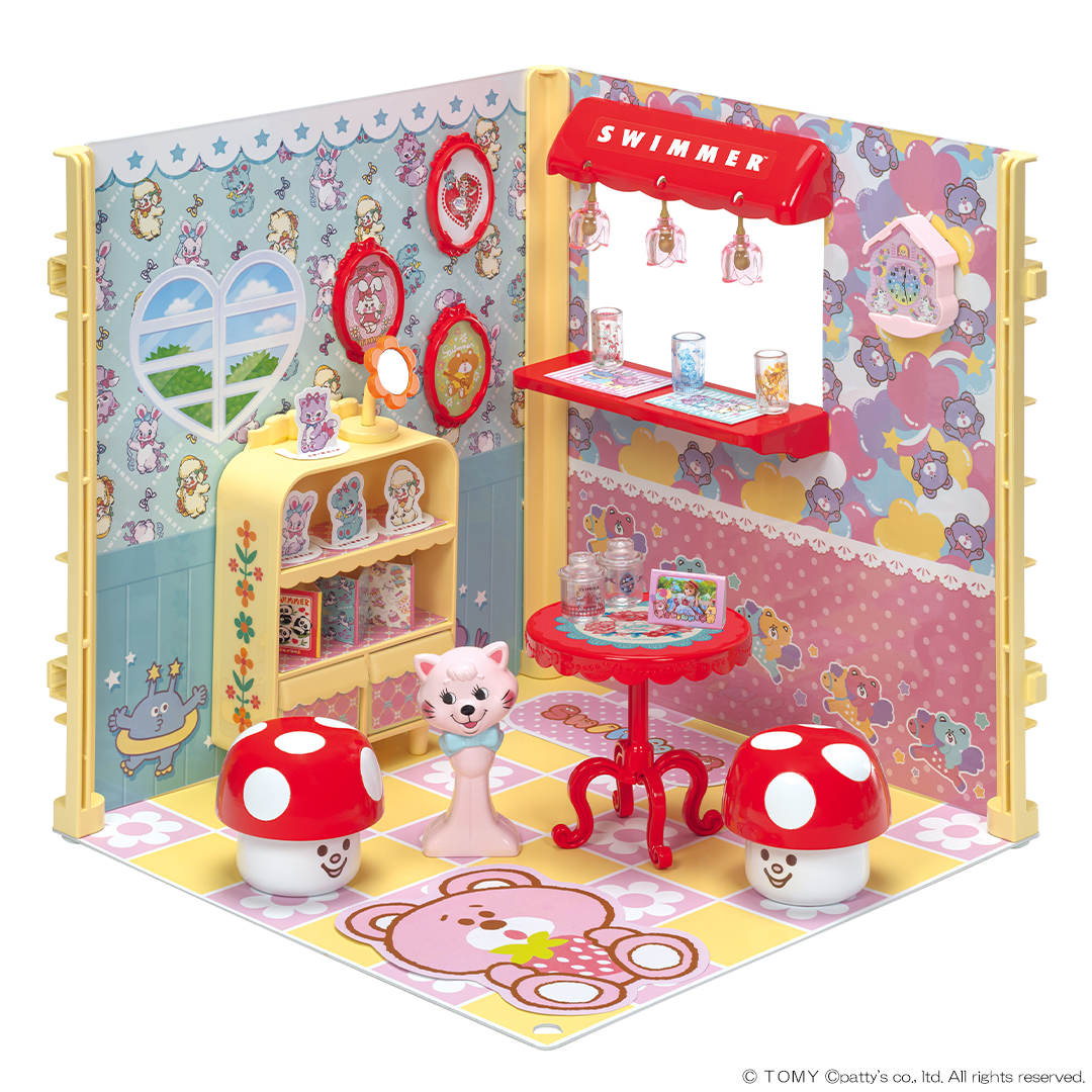 SWIMMERの雑貨商品「シャポードール(帽子たて)」や「フラワーミラー」などがリカちゃんサイズで再現!壁紙やお部屋の家具にもSWIMMERファン必見のデザインがあしらわれています(ハート)