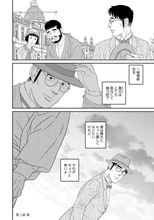 未曽有のパンデミックがようやく終結し、一時の平和が訪れた大正時代。「男は男らしく」「女は女らしく」が当たり前の時代。バリバリ働くモガ、望月女史の引き合わせで、二人の男が出会った。小説家の松永春光と画家の一柳翠帳。甘味が好きな二人は意気投合、そしてお互い惹かれあっていく。大震災と戦火の足音が近づくなか、二人の恋の運命は──