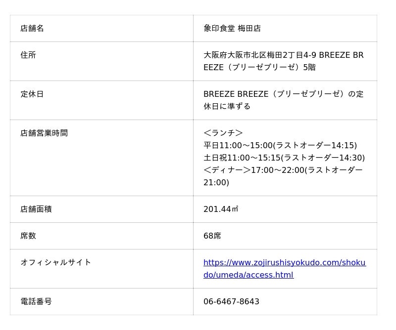 象印マホービン株式会社は、全国3店舗目となる常設のごはんレストラン「象印食堂 梅田店」(大阪市北区・BREEZE BREEZE(ブリーゼブリーゼ)5階)を、本日2026年2月12日(木)にオープンいたします。
