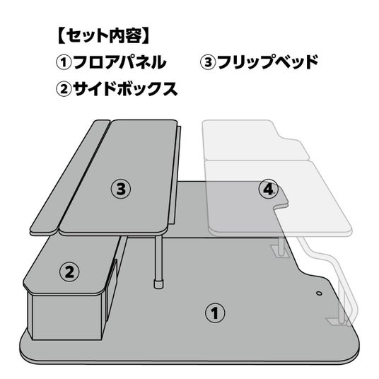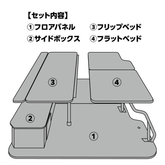 ハーフベッドからフルフラットベッドへハーフベッド フロアセット/ハーフベッドセットを“フルフラットベッド仕様”にするための追加ベッドキット。