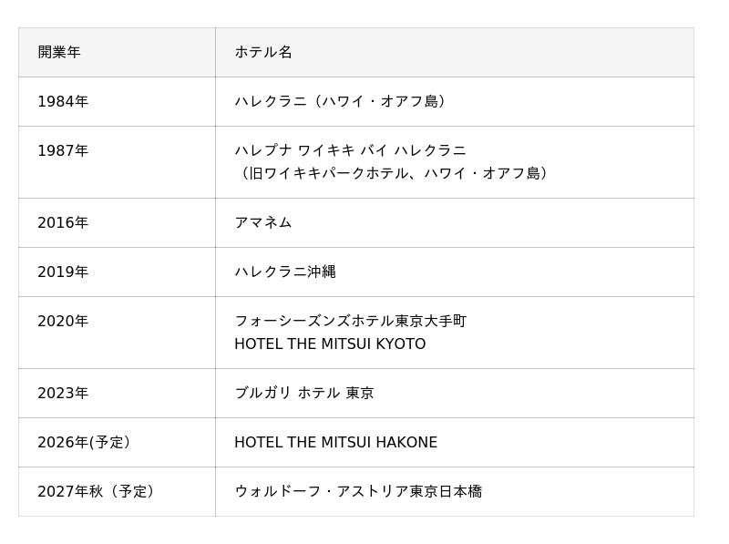 <三井不動産グループが開発・運営しているラグジュアリーホテル(開業予定含む)>