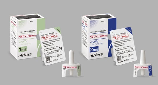 アルフレッサ ファーマは、2020年4月にARS Pharmaceuticals Operations, Inc.と、日本国内でのアドレナリン点鼻液の開発および販売におけるライセンス契約を締結いたしました。その後、日本人健康成人を対象とした薬物動態試験および第III相臨床試験を実施し、その有効性と安全性が認められたことから、2025年9月19日に「ネフィー(R)点鼻液1mg / 2mg」の製造販売承認を取得し、本日、新発売いたしました。