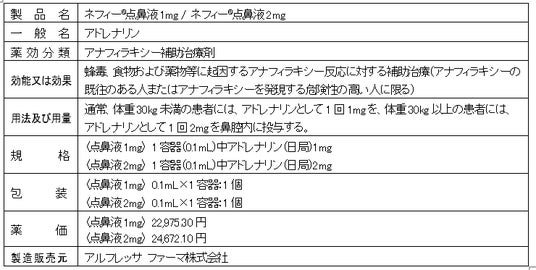 <アナフィラキシー補助治療剤「ネフィー(R)点鼻液」>