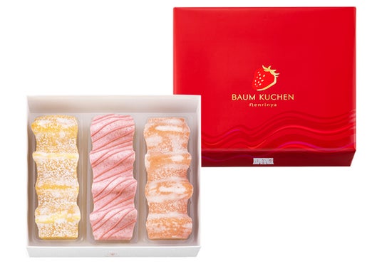 バター香る代表作『マウントバームしっかり芽』、春の味わい『マウントバーム 苺バター』、苺のショコラを重ね掛けした最新作『苺ショコラーテ』の3種が入った詰合せ。ねんりん家の春を満喫できる、今だけのギフトです。
