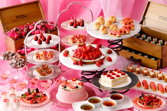 甘酸っぱい旬のいちごを贅沢に使用した「苺タルト」や定番の「苺のショートケーキ」をはじめ、ふんわりと焼き上げたシフォンケーキ、彩り豊かなジュレやマカロンなど、パティシエこだわりのスイーツを心ゆくまでお愉しみいただけます。