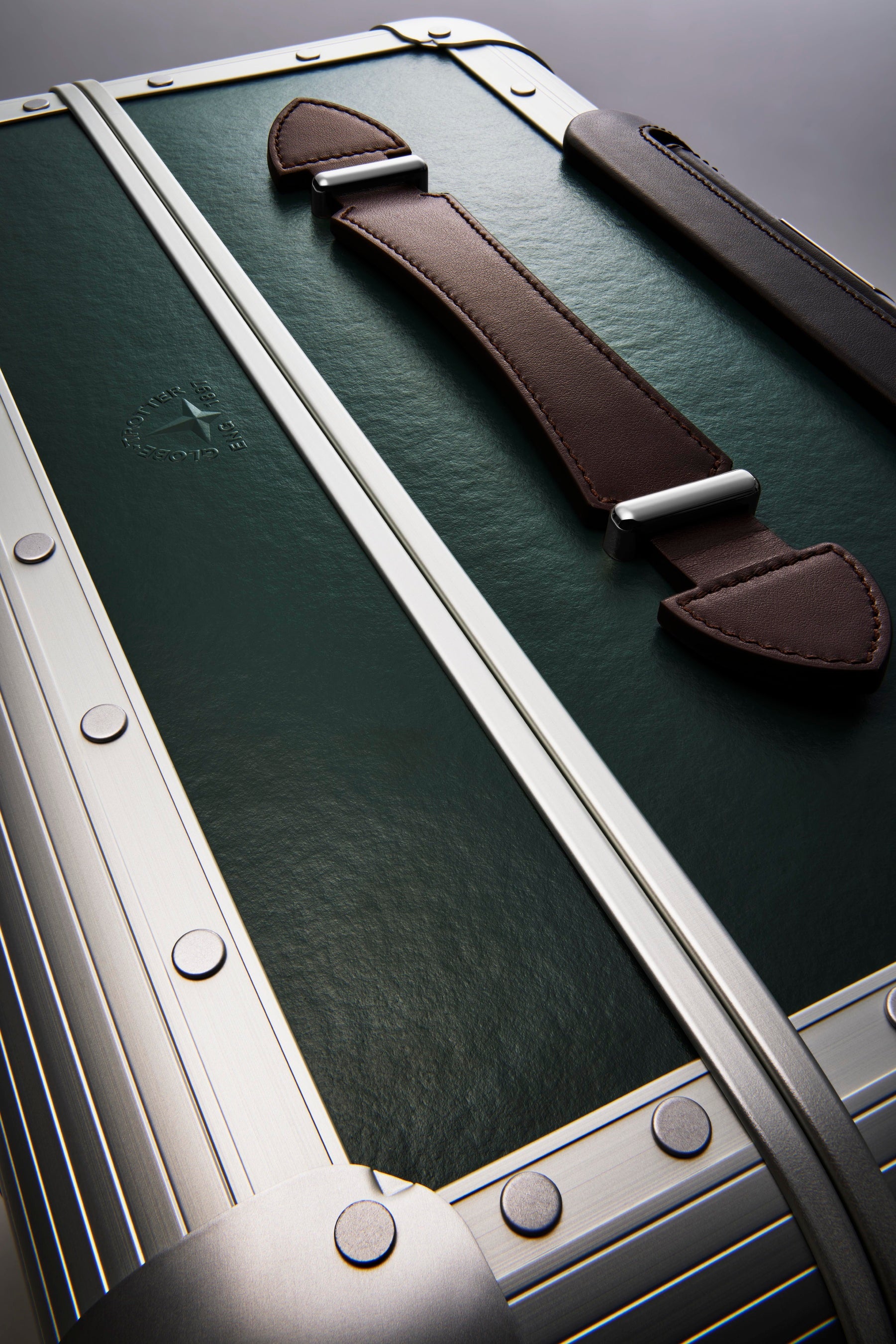 デザインの随所には、両メゾンのアイデンティティがさりげなく織り込まれ、ベルトやレザーループのディテール、さらに「センテナリー」コレクションに着想を得たハンドル(持ち手)には、GLOBE-TROTTERらしいビジュアルを反映。さらに、イタリアンレザーで包まれたテレスコピックハンドル(伸張式ハンドル)が全体のデザインを美しく引き締め、手触りの良さ、バランス、そして日常使いにおける快適さへと昇華。