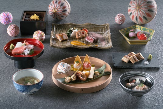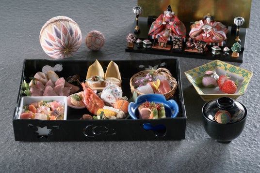 お内裏様とお雛様をイメージした前菜や、大名家の婚礼調度としても大切にされてきた「貝合わせ」にちなんだ蛤のお吸い物等、桃の節句ならではの華やかな会席料理をお楽しみいただけます。また、お祝いの気持ちをぎゅっと詰め込んだ「さげもん膳」もご用意。お好みにあわせてお選びいただけます。