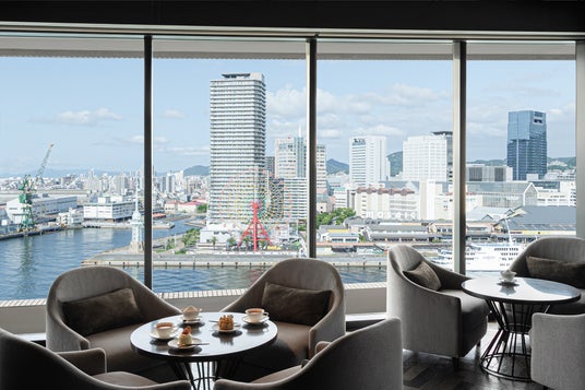 ホテル最上階に位置し、海と神戸の街並みを望む眺望豊かなカフェ。日中は自然光が差し込む空間で、神戸の海や街並み、神戸ポートタワーなどの景色を眺めながら、コーヒーや軽食とともにゆったりとしたひとときをお過ごしいただけます。