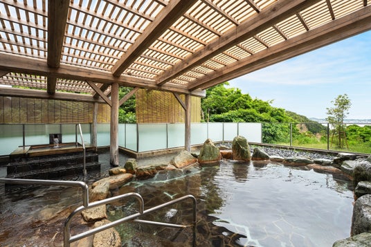 海から吹く風を感じる非日常の湯浴みを楽しむ温泉露天風呂