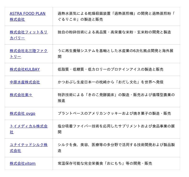 今回、厳正なる審査の結果、下記の10社を採択いたしました。