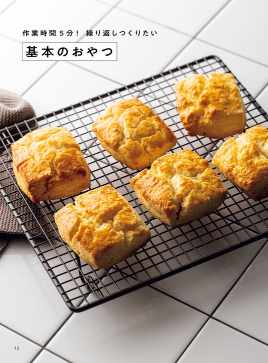 巻頭には、作業時間5分の基本のおやつとして、基本のスコーン、バナナマフィン、グラノーラなどを掲載しています。