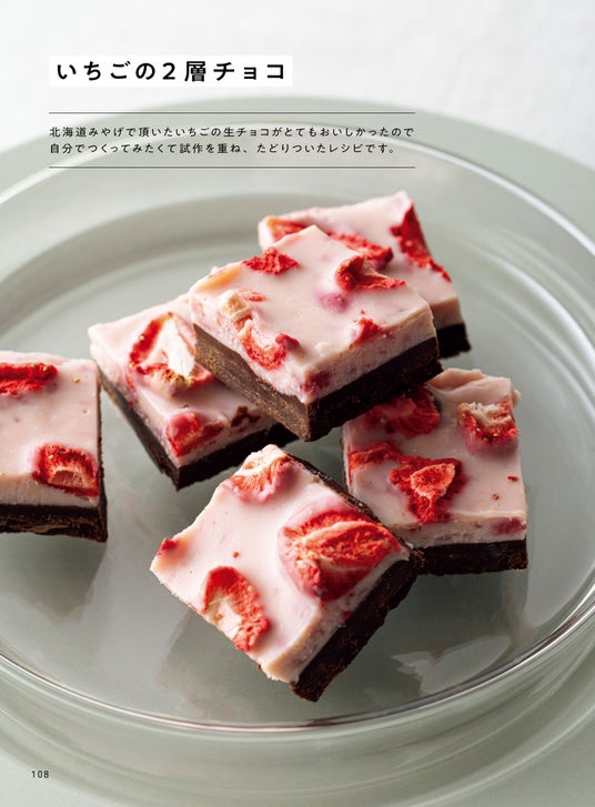 4章ではショートケーキ、ビクトリアケーキ、バスク風チーズケーキ、いちごの2層チョコなど、“おうちで作れたらうれしい”憧れのおやつにも挑戦できます。
