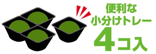 【冷凍和菓子4コ入シリーズ】出来たての一番おいしい状態を急速冷凍によりキープすることで“包みたてのおいしさ”を味わえる、人気の餅菓子商品です。電子レンジ対応の切り離せるトレーを採用しており、お皿いらずで食べたい個数だけ時短解凍できます。