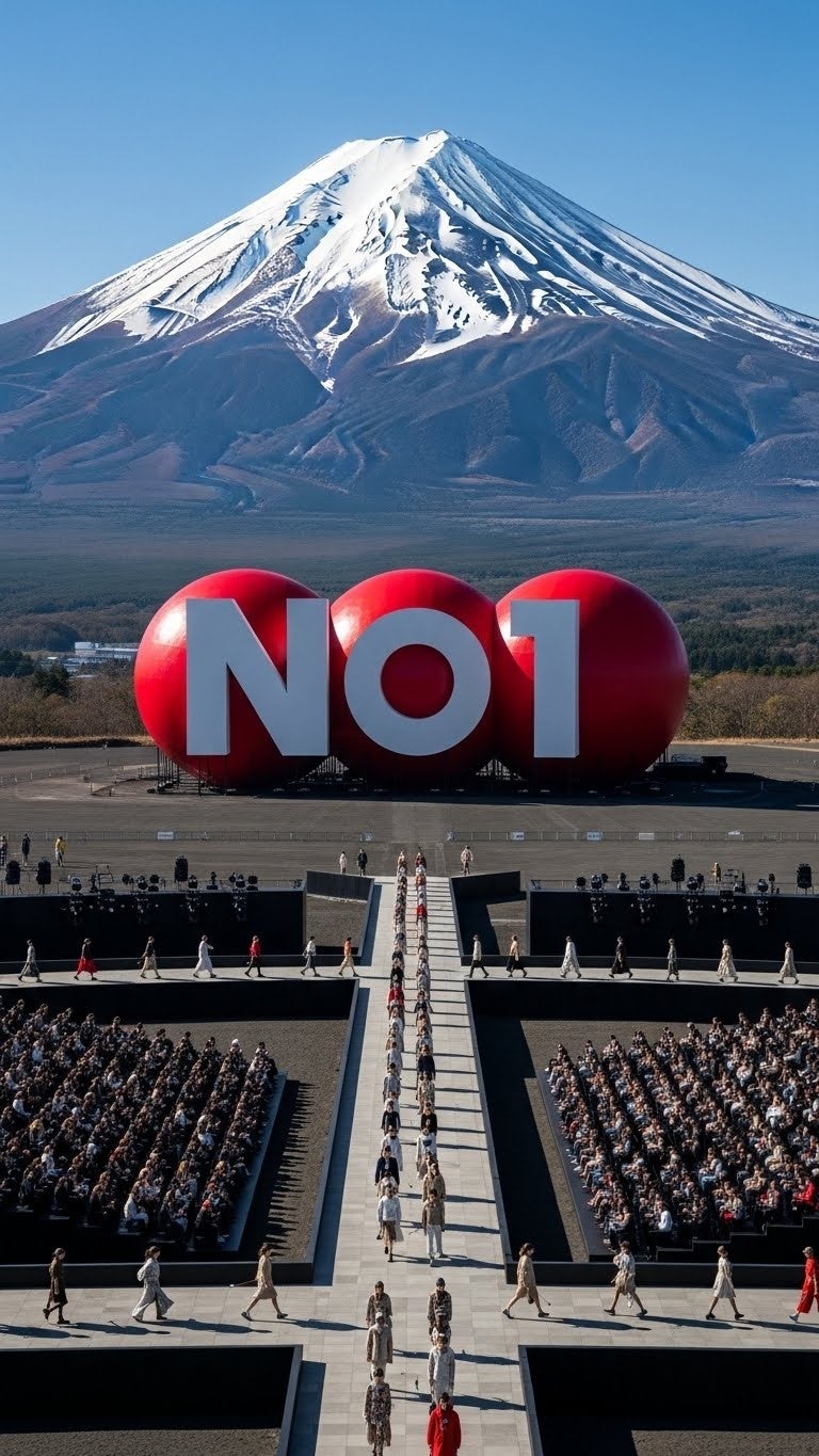 AIによって生成されたダイナミックな映像が、リアルとデジタルが交錯する未来感あふれるファッションショーを演出。