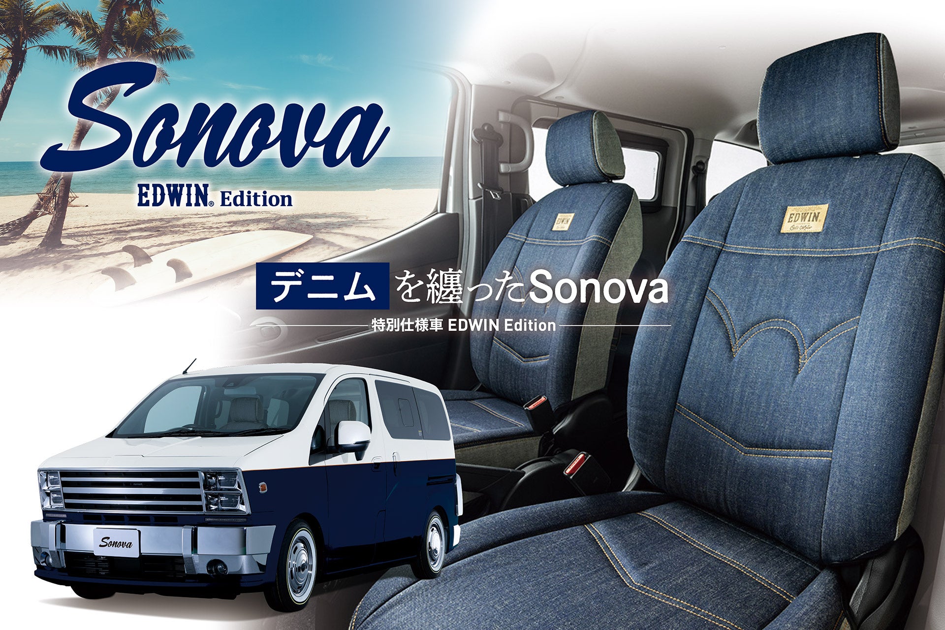 カスタマイズカーをはじめとした車両企画・開発・販売とカーライフに対するマーケティングの強化を目的として活動するアルパインニューズ株式会社(東京都大田区、宮下 謙社長)は、2024年1月にアルパインスタイル オリジナルカスタマイズカーとして発表した大人気のミニバン「Sonova(ソノバ)」に、日本を代表するデニムブランド「EDWIN(エドウイン)」(東京都品川区、俵 修一社長)との初めてのコラボレーションモデル「Sonova EDWIN Edition(ソノバ エドウイン エディション)」を特別仕様車として、大阪オートメッセ2026(2026年2月13日~15日:大阪市住之江区 インテックス大阪)の開催に合わせて初展示、同日2月13日より販売開始することを発表します。