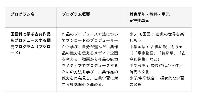今回はその第九弾として、IPを軸としたエンターテインメントコンテンツを手がける株式会社ブシロードと連携した「国語科で学ぶ古典作品をプロデュースする探究プログラム」を提供いたします。