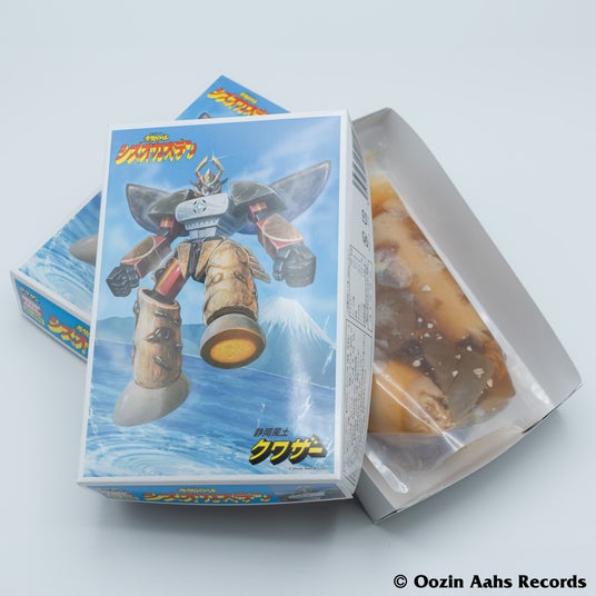 世界に誇るホビーの街・静岡ならではの、模型箱のようなパッケージでおなじみの「静岡クワザー」シリーズのおでん。「静岡おでんの具材が合体ロボットになったら?」という発想から描き下ろされた箱絵とデザインが、見る人の心を躍らせます。削り節と鰹節濃縮エキスが味に深みとコクを与え、見た目だけでなく味わいも本格的な静岡おでんに仕上げられています。