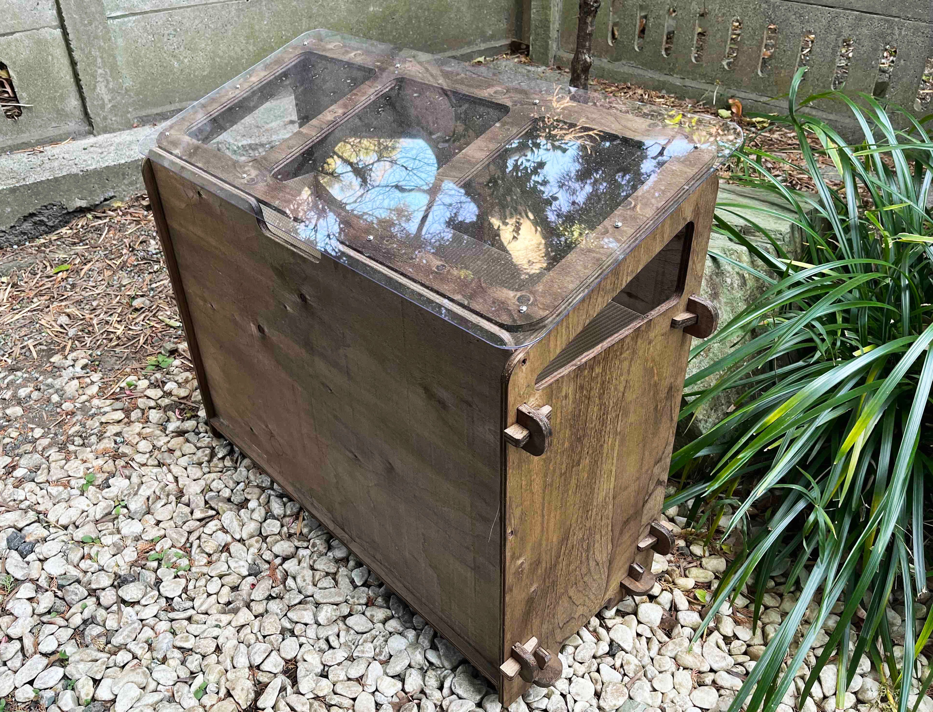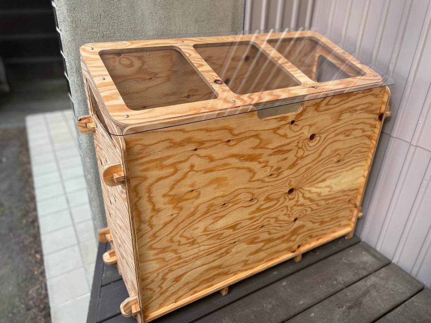 本商品は、黒土に含まれる微生物(バクテリア)の働きで生ごみを分解・消滅させる仕組みを採用し、電気・水・専用菌を必要としない点が特長です。黒土と容器があればすぐに使用でき、透明ふたと通気構造により、においや虫の発生を抑えやすい設計です。ベランダなど限られたスペースにも設置しやすいコンパクトな構造のため、集合住宅でも導入しやすく、DIY初心者でも簡単に組み立てることができます。さらに、組み立てたあと、自由に色をぬったり、やすりをかけて磨いたりと、自分好みに仕上げることができ、オンリーワンのキエーロづくりを楽しめます。