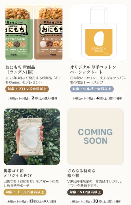 完全栄養ご飯「おにもち」を展開するvitom株式会社(本社:東京都品川区東五反田1-6-3、代表取締役:林 幹晟)は、このたび、日頃よりご愛顧いただいているユーザーのみなさまへの感謝を込め、初となるロイヤリティプログラム「おにもち会員ランク」を導入いたしました。