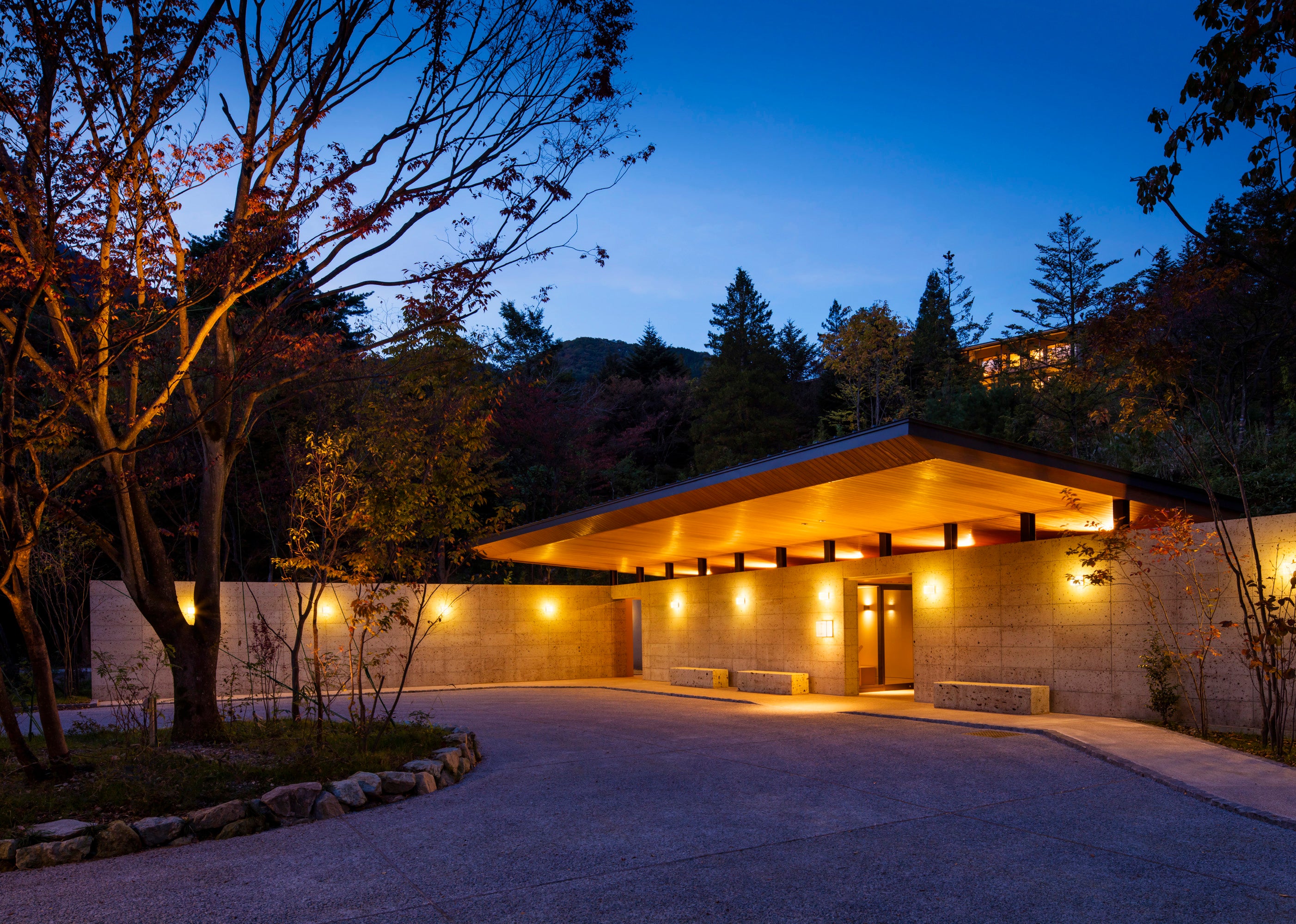ばめられ、木々に囲まれた中庭や客室からは四季の景色が望めます。
