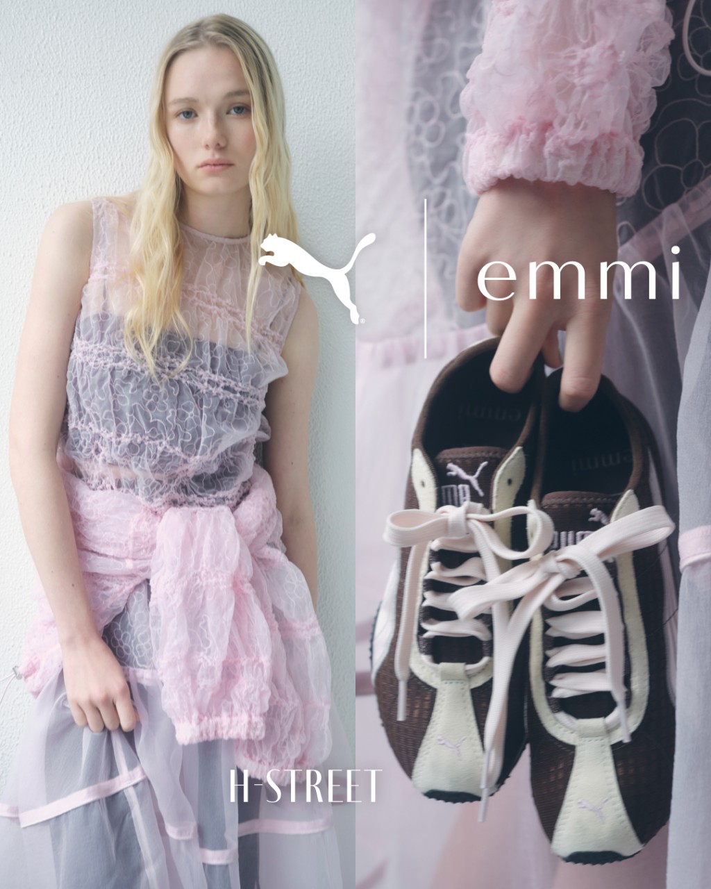 【emmi×PUMA】ロープロファイルの新アイコン"H-STREET"を初別注 ブラウンに淡いピンクを掛け合わせスポーティさにフェミニンなエッセンスを感じる一足に -