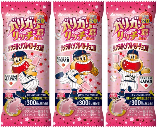 今回、「ガリガリ君リッチ」シリーズ20周年を記念した第2弾商品として、野球日本代表「侍ジャパン」を盛り上げるために、ガリガリ君史上初めて侍ジャパンのユニホームを着た商品を発売します。