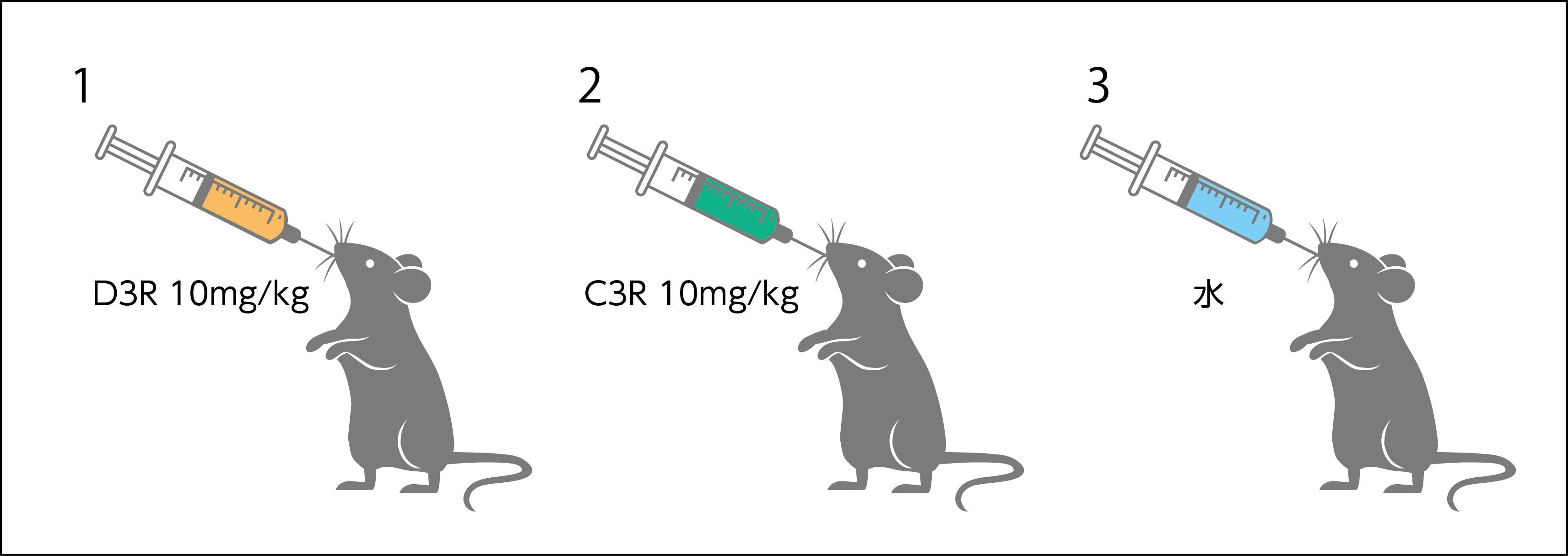 別のマウスを以下の3群に分け、それぞれ1日おきに1ヶ月(30日間)、経口投与しました。