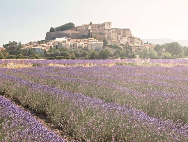 6月~7月には、グリニャン城を囲むようにデュランスのオーガニックラベンダー畑が広がります。