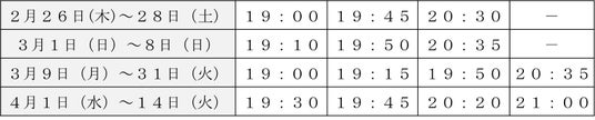 3月1日(日)~4日(水)、8日(日)、9日(月)