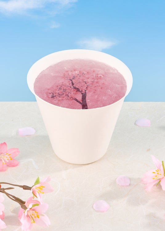 日本酒をベースに、桜風味のお酒を重ねたアルコールドリンク。口に含むと、桜の香りと日本酒の旨みが層になって広がります。和紙のカップとドリンク上のラテコッタで目でも楽しめる春らしい一杯に仕上げました。
