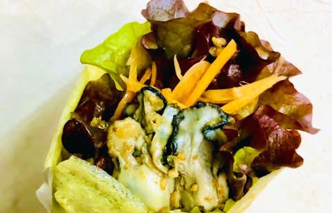 日本のわんぱく小僧炭火焼き牡蠣、肉巻きおにぎり