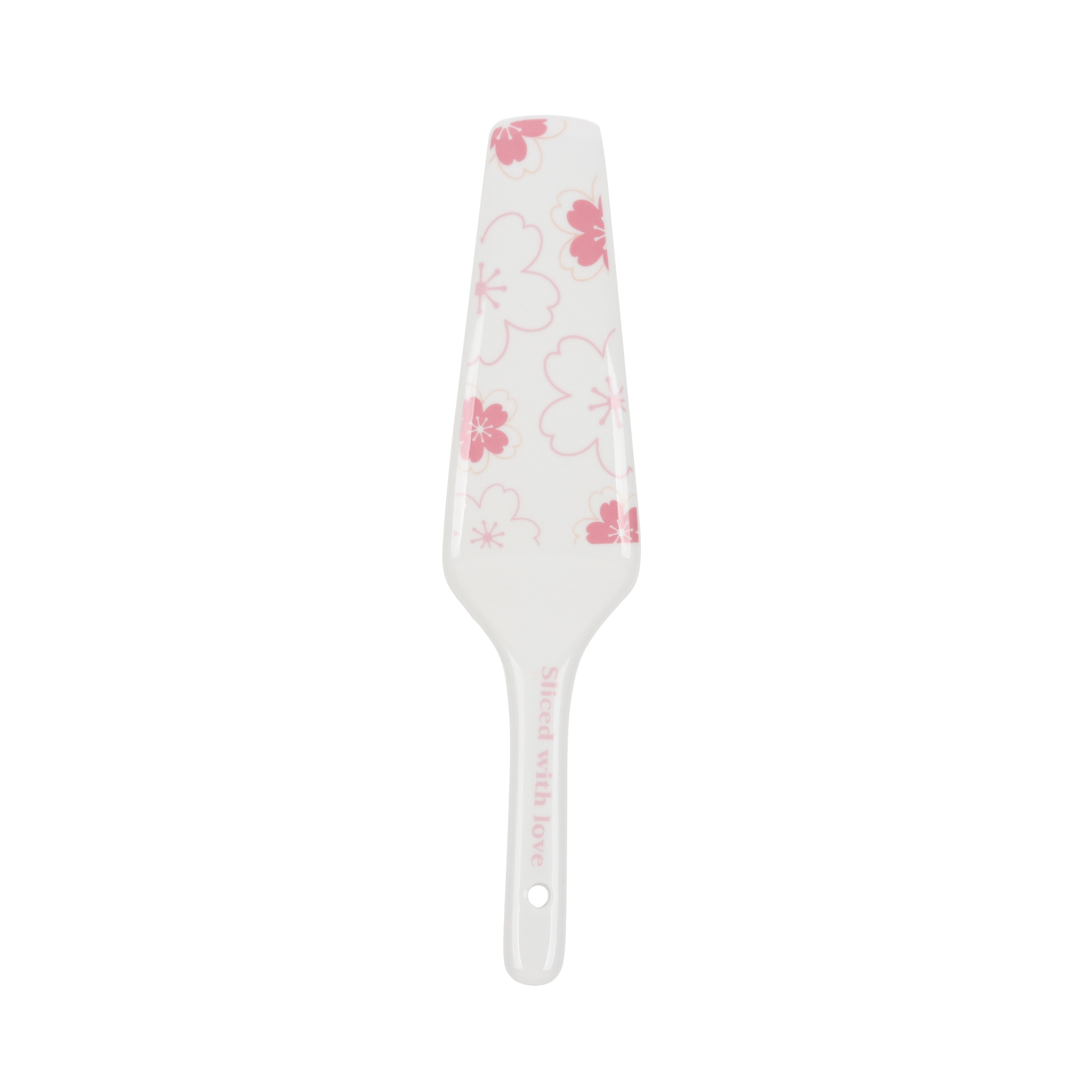 桜が散りばめられたデザインには、思わずニコッとしてしまう「Sliced with love(愛情をこめて切り分けて)」の文字が。