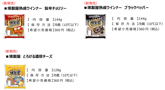 「食を通じて人と社会に貢献する企業」を目指す総合食品メーカー 丸大食品株式会社(本社:大阪府高槻市、社長:佐藤 勇二)は、人気の『燻製屋』シリーズから「燻製屋熟成ウインナー 旨辛チョリソー」「燻製屋熟成ウインナー ブラックペッパー」「燻製屋 とろける濃厚チーズ」の3種を2026年3月上旬から全国のスーパーマーケット等で発売いたします。