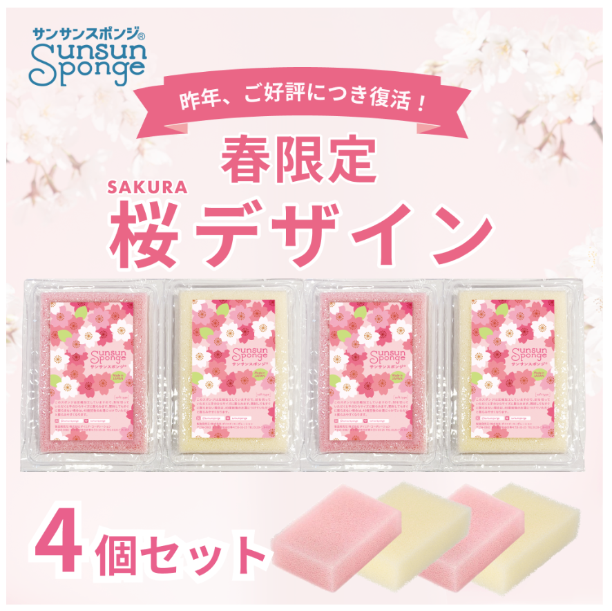 食器洗い用固形洗剤やスポンジなどのキッチン回りアイテムを製造・販売する株式会社ダイニチ・コーポレーション(東京都世田谷区;代表取締役 吉田元之、以下ダイニチ)は、洗い物に費やす時間に“ときめき”を提供する「サンサンスポンジ」が、「桜」をモチーフにした春限定、人気の桜パッケージをオンラインショップにて2月13日(金)より販売開始します。本商品は、昨年大好評につき期間限定での復活が決定しました。桜を一面に散りばめたパッケージは、卒業や入学のお祝いや、新生活の応援ギフトとしておすすめです。ダイニチ・コーポレーションは、会社のフィロソフィーである「Shine life.ささやかに、晴れやかに。」を大切にしながら、キッチンの傍らに『世界のスタンダード』として存在する商品を目指してまいります。