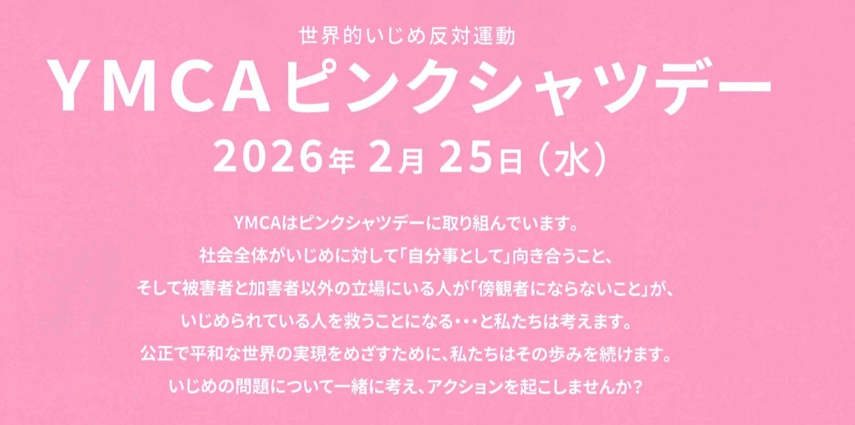 2月一か月間を「ピンクシャツマンス」として、大阪YMCA各事業所や関係団体において様々な取り組みが行われます。