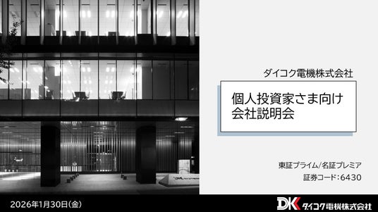 ダイコク電機株式会社は個人投資家向けWEBセミナーを2026年1月30日(金)に開催し、その内容を2026年2月4日(水)よりアーカイブ動画として公開しました。