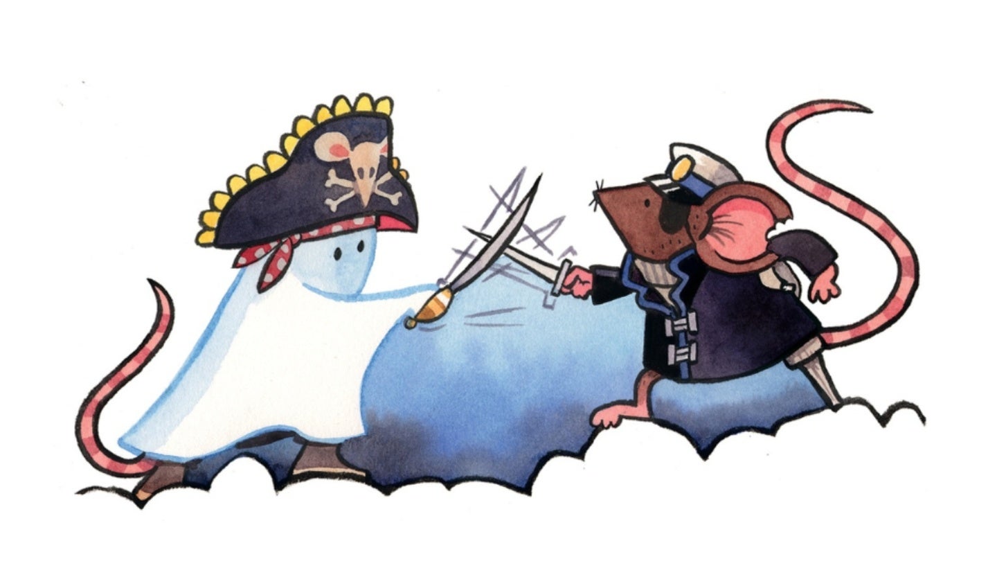 うわさのゆうれい船は、きっと、しずんだお宝をさがしもとめる海賊ネズミたちが、海賊船ごとよみがえったものにちがいありません…。