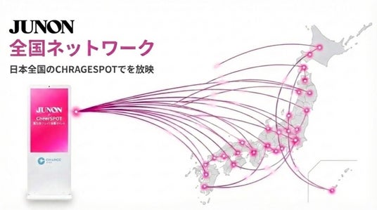 - 全国の『CHRAGESPOT』デジタルサイネージ放映※「JUNON公式CM」への出演権日本最大級の設置台数を誇る『CHARAGESPOT』ネットワークをジャックし、JUNON公式CMのメインモデルとして起用。圧倒的な露出を獲得できます。